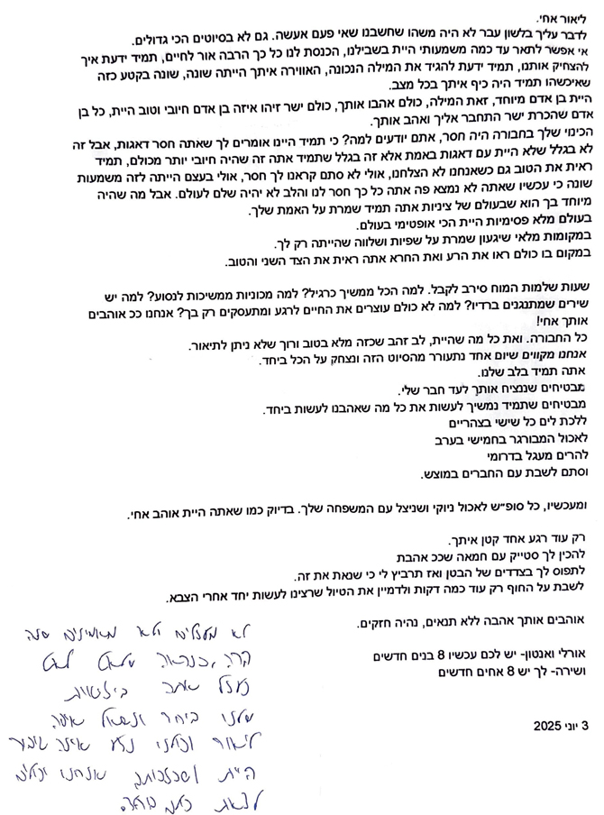 מכתב מאביו של אסף חממי ז"ל